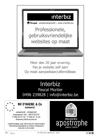 NV D’HAENE & Co Autobedrijf AANKOOP - VERKOOP Staatsbaan 232 - 9870 ZULTE T 056 60 31 03 - F 056 61 13 32 dhaenezulte@skynet.be ONAFHANKELIJKE SPECIALIST MERCEDES PERSONENWAGENS & VRACHTWAGENS NIEUW & OCCASIE - 22 - De Piste Zulte wijkfeesten - 2025