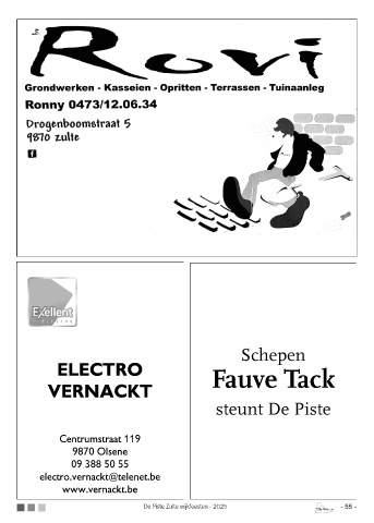 Schepen ELECTRO Fauve Tack VERNACKT steunt De Piste Centrumstraat 119 9870 Olsene 09 388 50 55 electro.vernackt@telenet.be www.vernackt.be De Piste Zulte wijkfeesten - 2025 - 55 -