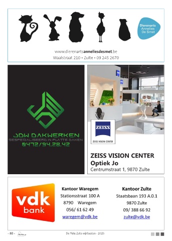 www.dierenartsanneliesdesmet.be Waalstraat 210 • Zulte • 09 245 2670 ZEISS VISION CENTER Optiek Jo Centrumstraat 1, 9870 Zulte - 80 - De Piste Zulte wijkfeesten - 2025